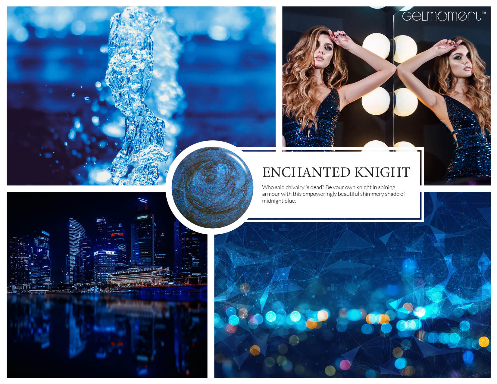 Navy blue. Dark. Pearl finish. Purple iridescence. Sheer. Cool undertone.